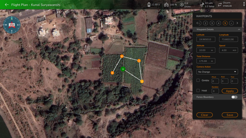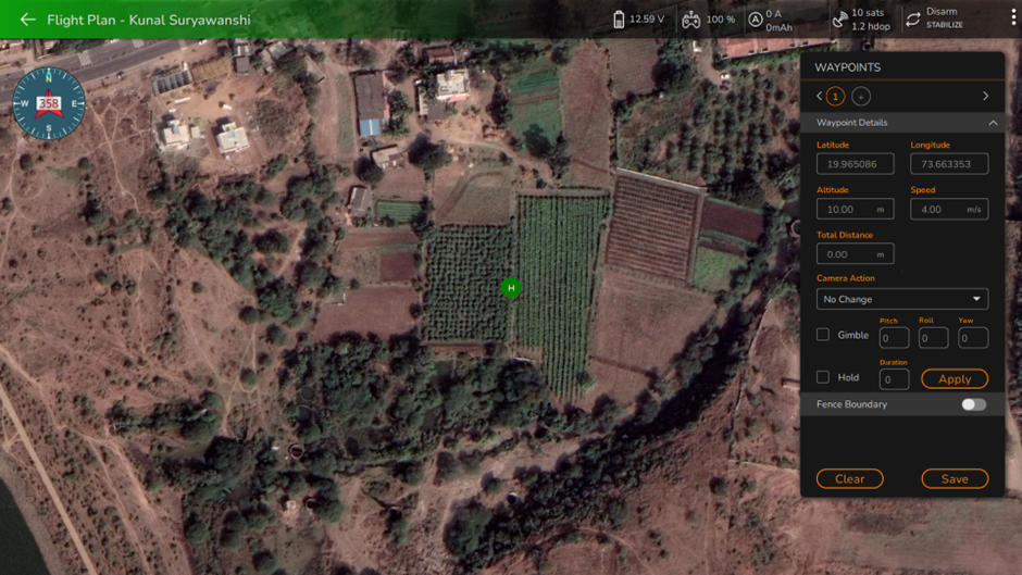 After adding all waypoints for a plan, users can configure each waypoint using the "Waypoint Details" option. Additionally, they can enable and draw a fence for the waypoint plan.