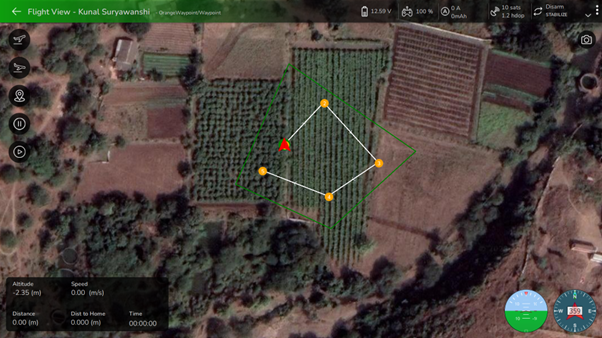 After clicking the "**OK**" button, it will proceed with the flight, and the following fly view will be displayed on your screen.
