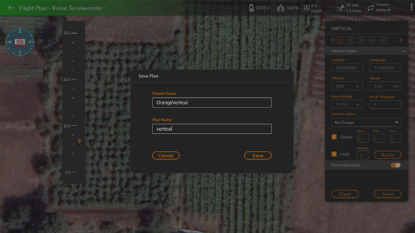 &#x20;After completing the vertical details and fence boundary, the user must save the plan by clicking on the "Save" button. This will prompt the following screen, allowing the user to enter a project name and plan name for saving the plan.&#x20;