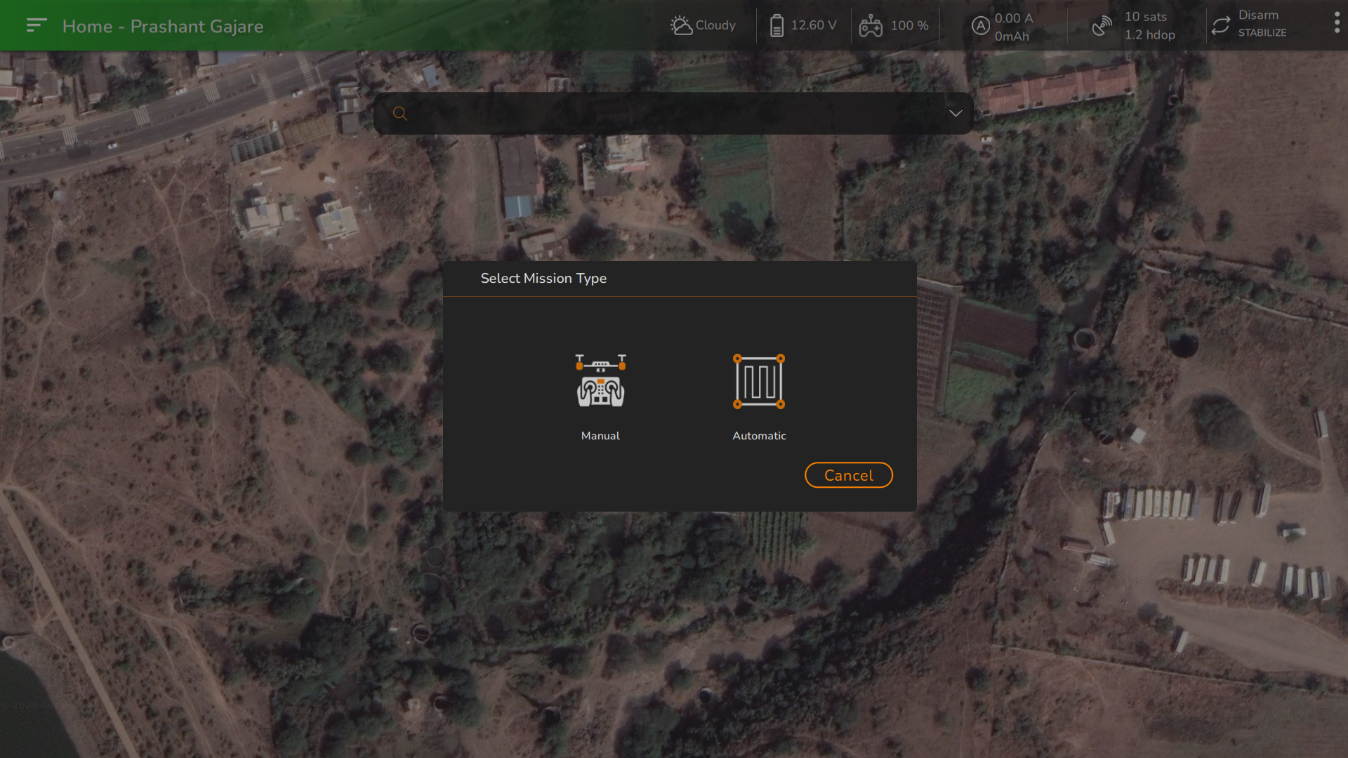 On this screen, choose the "**Mission Type**" based on your preference—either "**Manual**" or "**Automatic**" for further processing.