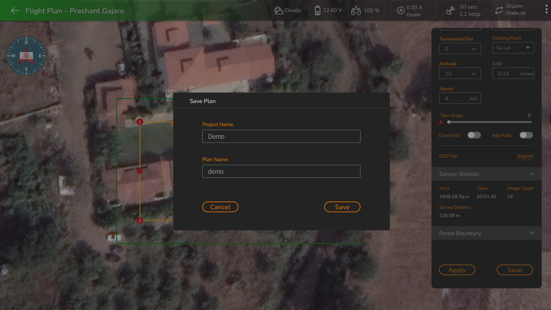 On this screen, enter the project name and plan name to save the flight plan in the project with the specified plan name.
