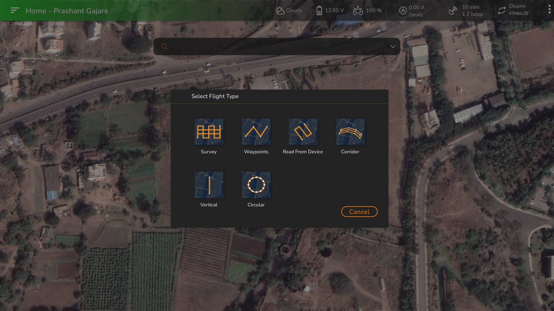 **Step 3**: If the user selects "**Manual**" as the flight type in **Step 2**, the following screen will be visible on the user's device, enabling a direct flight start.
