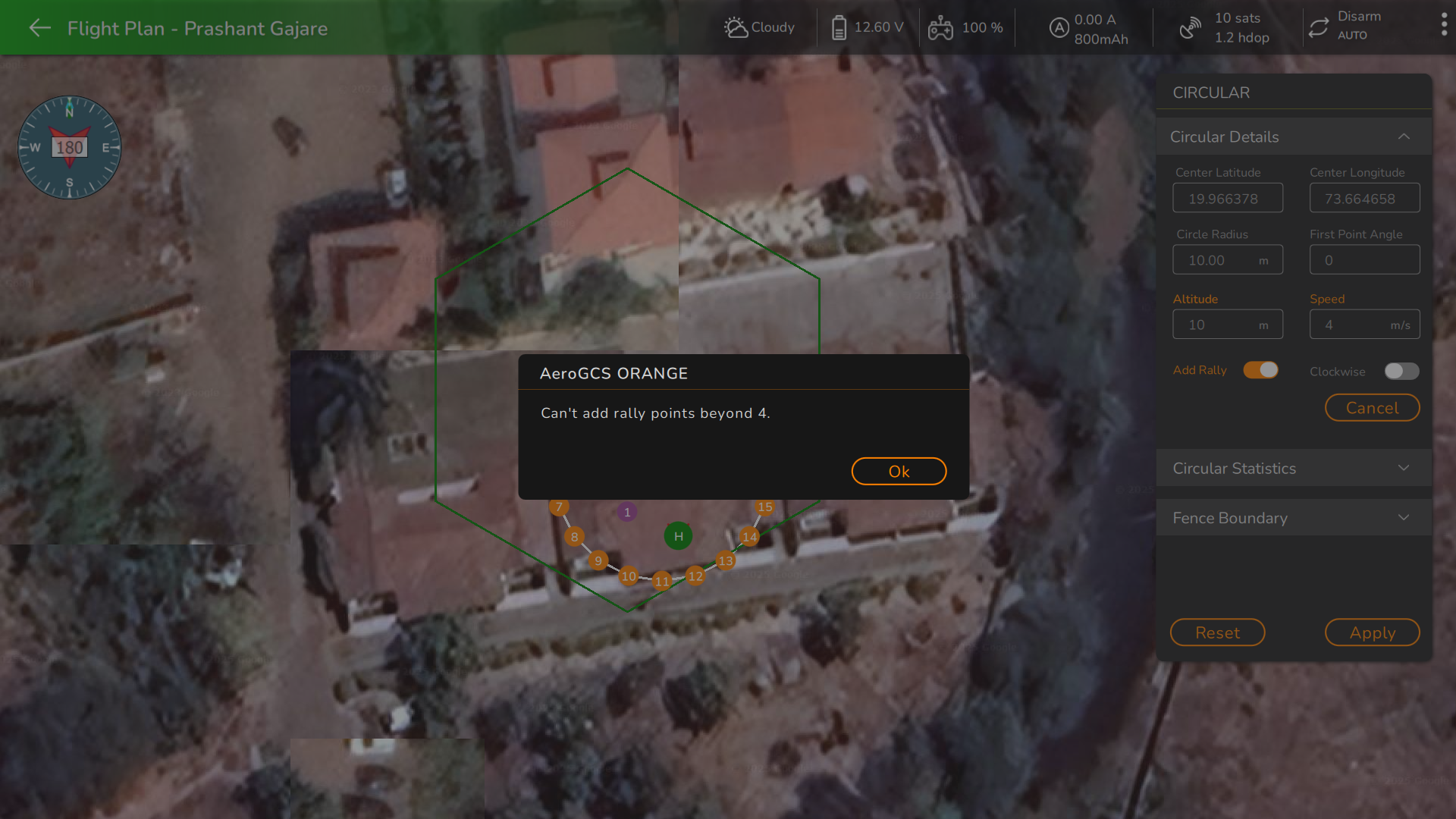 When this option is enabled, users can add a maximum of 4 rally points in a circular plan by simply clicking on the desired location within the circular plan. As shown in the following screen.